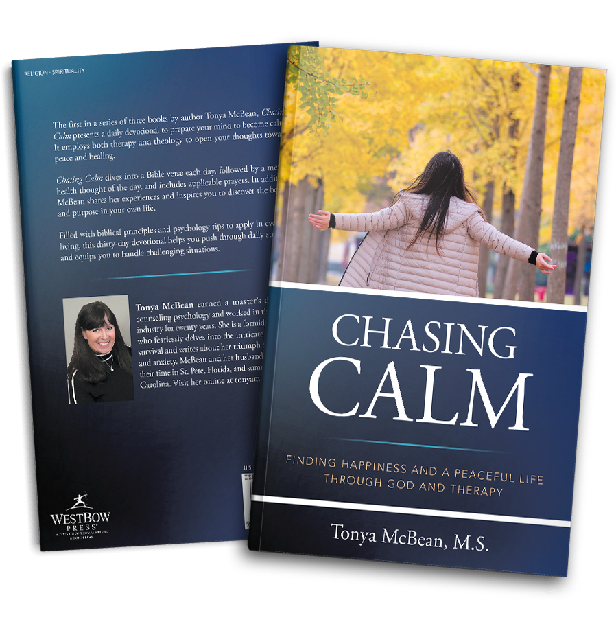 The first in a series of three books by author Tonya McBean, Chasing Calm presents a daily devotional to prepare your mind to become calm. It employs both therapy and theology to open your thoughts toward peace and healing.