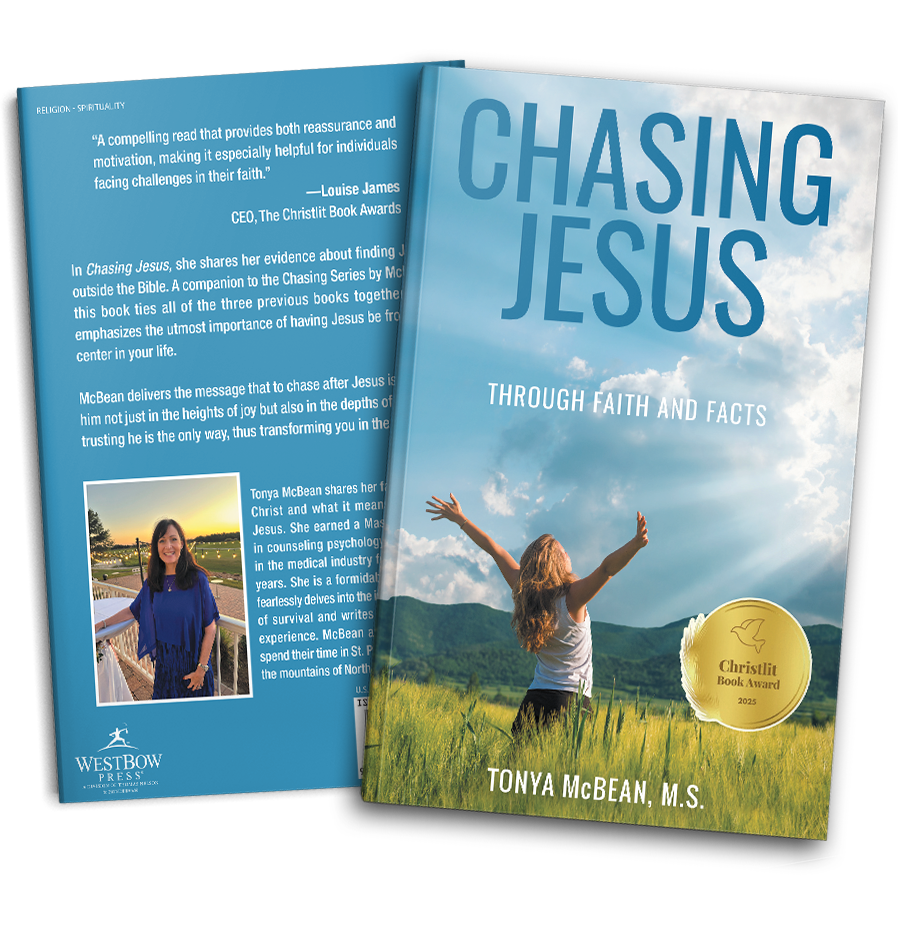 In Chasing Jesus, she shares her evidence about finding Jesus outside the Bible. A companion to the Chasing Series by McBean, this book ties all of the three previous books together. She emphasizes the utmost importance of having Jesus be front and center in your life.